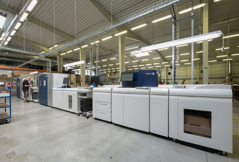 O prázdninách jsme otevřeli dvě zbrusu nové skladové haly, každou o výměře 1.000 m3. Celkem tak máme k dispozici 2.700 nových paletových míst pro uskladnění jak tiskovin našich klientů, tak papíru, díky čemuž můžeme dodávat ještě rychleji. Získali jsme díky tomu také nové prostory pro digitální divizi, která se po svém přestěhování mohla rozšířit o další tiskové stroje.