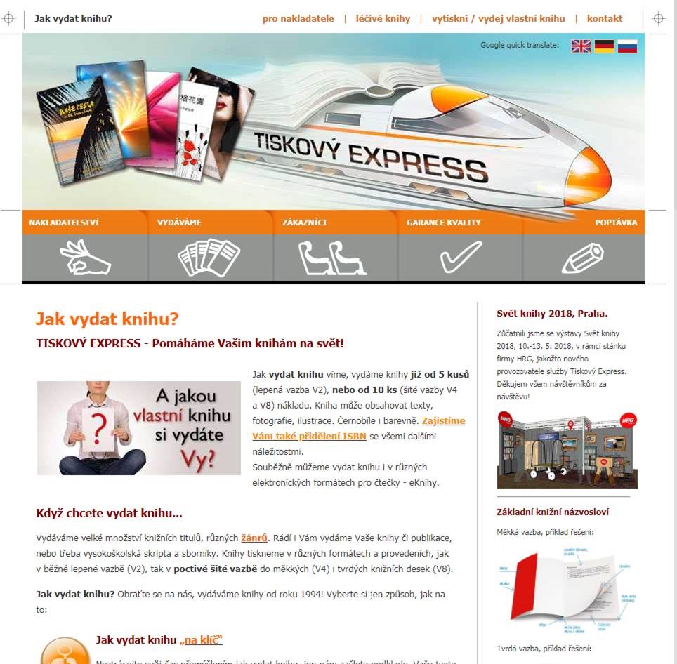 Začátkem června převzala tiskárna H.R.G. webovou službu Tiskový Express – specializovaný webový portál zaměřený na vydávání a tisk knih. Společně s tím vznikla nová pobočka H.R.G. ve Zlíně, navazující na portfolio polygrafických služeb firmy Tigris. Posilujeme tak výrazně nabídku v oblasti tisku knih v menších a středních nákladech, v návaznosti na zakoupení šicí linky z archu, pro šité vazby V4 a V8. Zkušený zlínský tým, který stojí za službou Tiskový Express, zajistil od vzniku serveru v roce 2010 vydání mnoha knih a publikací jak pro jednotlivce, tak pro organizace a instituce. Kromě poradenství zákazníkům, přípravy podkladů pro tisk a samotné výroby, zajišťuje i přiřazení ISBN registrace a další doplňkové služby.